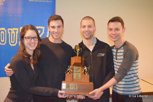 Les joueurs de l’équipe Touchette (Caroline Touchette, Craig Ross, Robert Daudet et Liam Green) savourent leur victoire au Bonspiel de la francophonie.