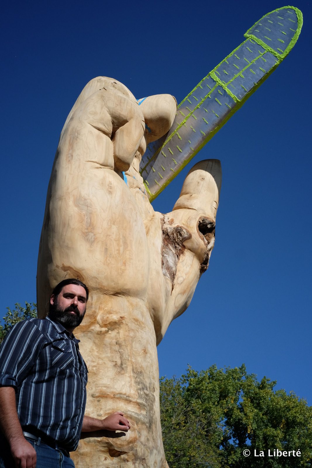 David Perrett, auteur de la soumission gagnante, décrit Nous rêvons de canots volants, l’œuvre qu’il façonne depuis la mi-juillet. « C’est une main qui sort de la terre, et qui lance un modèle de canot, comme si c’était un avion de papier.